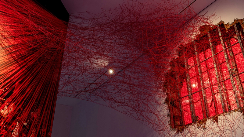 艺术家在空中“作画”,用铺天盖地的线织出生死之网凭借彩色毛线、绳索和丝线创作的迷宫式装置作品,盐田千春在全球艺术市场备受瞩目。